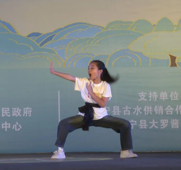 在“村武”擂台赛区,来自古水镇牛岐村和排沙镇木塝村的“武林高手”展开巅峰对决。刚猛的拳法虎虎生风,稳健的步法落地生根,刀光剑影间尽显传统武术的锋芒;长枪舞动如银蛇出洞,破风之声清脆凌厉,引得观众阵阵惊呼。其中,9岁的古水镇牛岐村三良堂醒狮武术队的参赛选手陈宏耀格外引人注目,他身着黑红相间练功服,在擂台上打得有模有样。